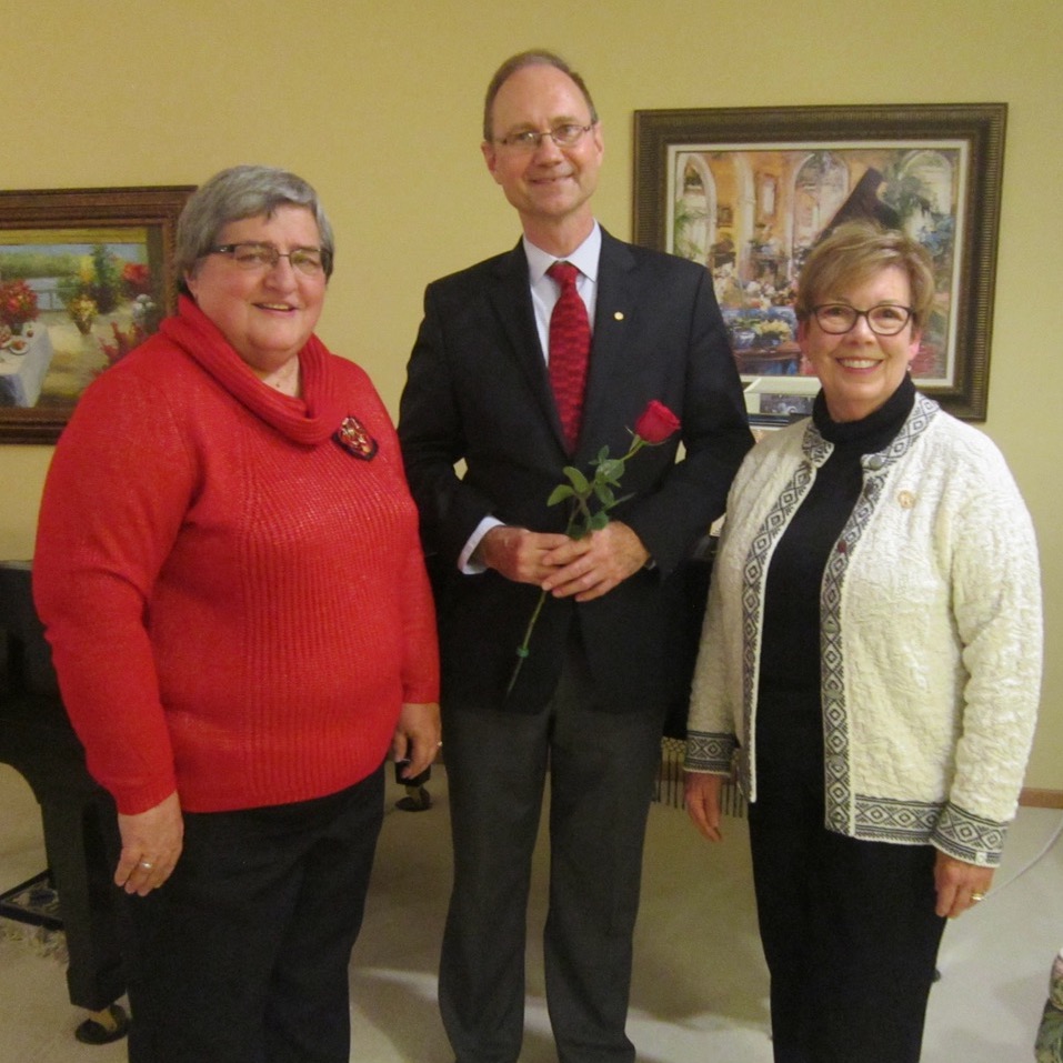 On October 8, 2018, David Evan Thomas was named a National Arts Associate of Sigma Alpha Iota Fraternity (SAI), and initiated into the Minneapolis/St. Paul Alumnae Chapter as a Distinguished Member. According to SAI, “a National Arts Associate is a man or woman who is nationally recognized for distinguished contribution to the arts.” DET is shown here with Diane Lundeen, Chapter President, and Liz Nordling, Chapter Vice President. The red rose is the symbol of SAI. “The Mission of Sigma Alpha Iota International Music Fraternity is to encourage, nurture and support the art of music,” reads the fraternity’s web page. “SAI supports and encourages women musicians of all ages, races, and nationalities, supports and promotes successful and innovative educational programs in music for all stages of life, cultivates excellence in musical performance, and promotes programs and activities that stress the love and importance of music in our lives.”
